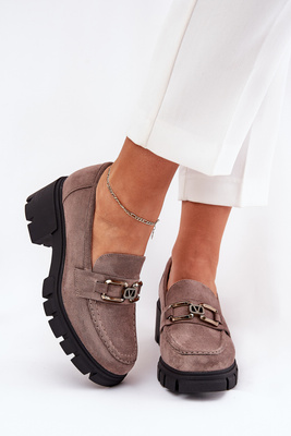 Еко Замшеві Жіночі Півчеревики З Декором Ciemnobeżowe Vinceza 39921