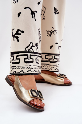 Плоскі Сандалі З Декором Еко Шкіра Золоті Lilria