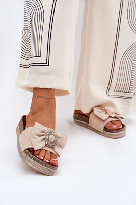 Жіночі Сандалі На Платформі З Бантом І Декоративною Брошкою Бежеві Lenela