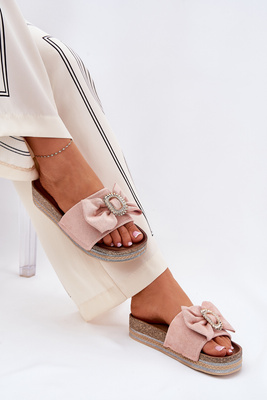 Жіночі Сандалі На Платформі З Бантом І Декоративною Брошкою Рожеві Lenela