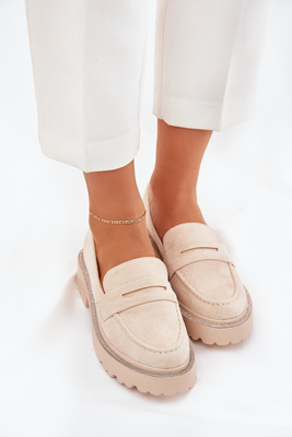 Жіночі еко замшеві мокасини з цирконіями бежеві Wilamla