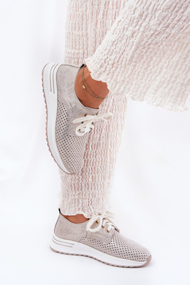 Шкіряні Легкі Жіночі Полуботинки На Платформі Artiker 56C2113 Бежево-Золоті