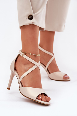 Сандалі З Переплетеними Ремінцями На Тонкому Каблуці Перловий Бежевий Sergio Leone SK432