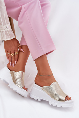 Шкіряні Сандалі На Танкетці Artiker 56C0435 Золоті