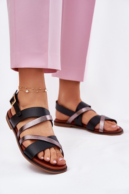 Жіночі Сандалі На Плоскому Каблуці З Ремінцями Чорні Sergio Leone SK086H