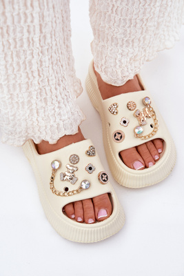 Жіночі Пінні Сандалі З Золотими Кліпсами Світло Бежеві Хортіана