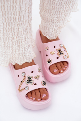 Жіночі Пінні Сандалі На Масивній Платформі З Золотими Декораціями Рожеві Ivoriel