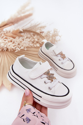Дівчачі Кросівки З Наліпкою Ведмедик Білі Solena