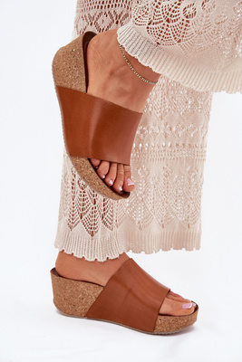 Zazoo 40291 Шкіряні Жіночі Сандалі На Корковому Каблуці Коричневі