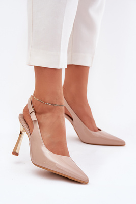 Лаковані Туфлі З Відкритою Пяткою І Загостреними Носками Бежеві Rivori