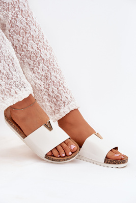 Жіночі сандалі на корковій платформі з декоративним елементом білі Vessira