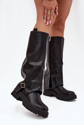 Утеплені чоботи з загнутим верхом і пряжкою чорні Fiorae
