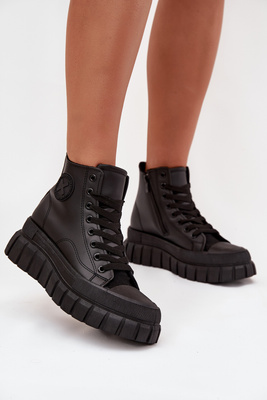 Утеплені Високі Кросівки Для Жінок На Платформі З Блискавкою Чорні Sarira
