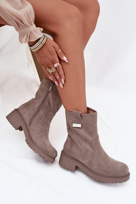 Теплі жіночі чоботи на низькому каблуці сірі Mirellea