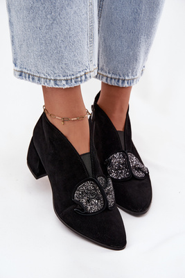 Шкіряні замшеві жіночі черевики на підборах з оздобленням D&A MR52-182 Чорний