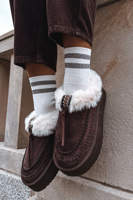 Жіночі зимові черевики з хутром на платформі шоколадні Rosmira