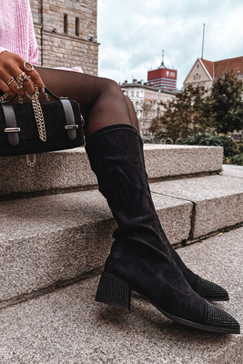 Жіночі чоботи з оздобленням на блоці еко замша Чорний Ivanna