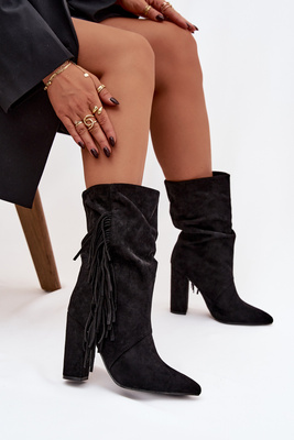 Darlina жіночі ботильйони на підборах з бахромою утеплені чорні