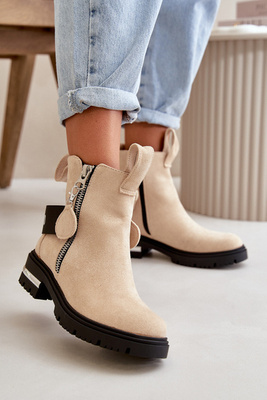 Жіночі теплі черевики на блискавці Бежеві Calvaro