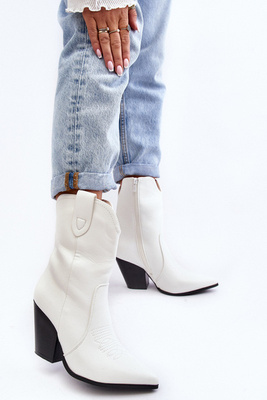 Жіночі ковбойські чоботи на каблуці білі Melaitia