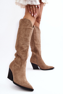 Стильні замшеві ковбойські чоботи бежеві Delia