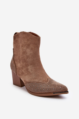 Жіночі ковбойські чоботи на каблуці з прикрасами бежеві Eleduana