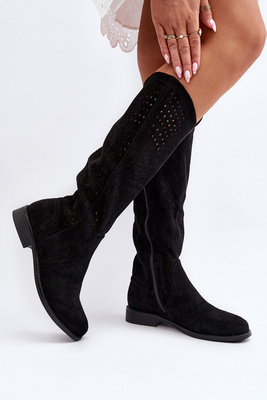 S.Barski HY66-150 Чорні вирізані черевики на плоскій каблуці