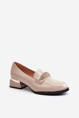 Жіночі лаковані туфлі на низькому каблуці бежеві Marilni
