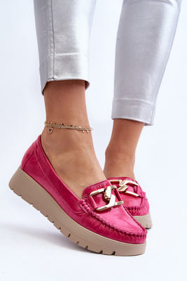 Шкіряні мокасини на платформі Zazoo з декором кольору фуксії