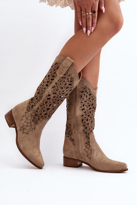 Бежеві жіночі ажурні чоботи Zazoo 3403 на низькому каблуці