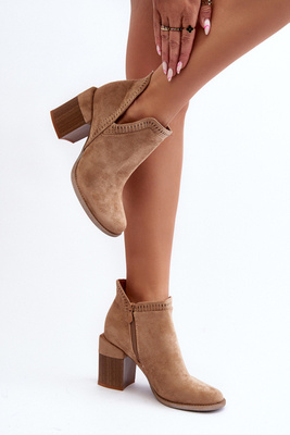 Ботильйони на масивному каблуці з вирізом світло-бежевого кольору Jolnima