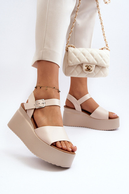 Жіночі босоніжки на танкетці бежевого кольору Geferia