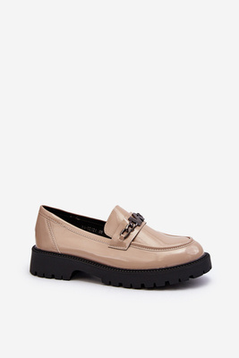 Жіночі лаковані лофери на плоскій підошві бежеві Ezoma