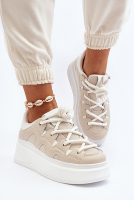 Жіночі кросівки на масивній шнурівці Vinali бежевого кольору