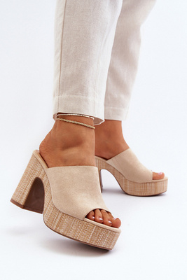 Жіночі босоніжки на масивному каблуці бежеві Siobhan
