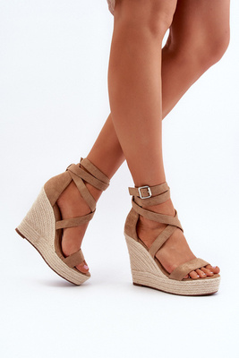 Босоніжки на танкетці з плетеними деталями. Коричневий сальт