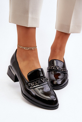 Жіночі лаковані туфлі на низькому каблуці чорного кольору Albreide