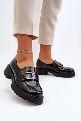 Чорні жіночі лаковані лофери Santtes