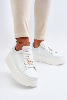 Жіночі шкіряні кросівки на платформі з ведмедиком білі Vinceza 66641