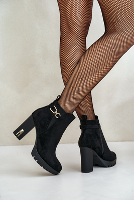 Теплі жіночі ботильйони на високому каблуці Чорні Terisanna