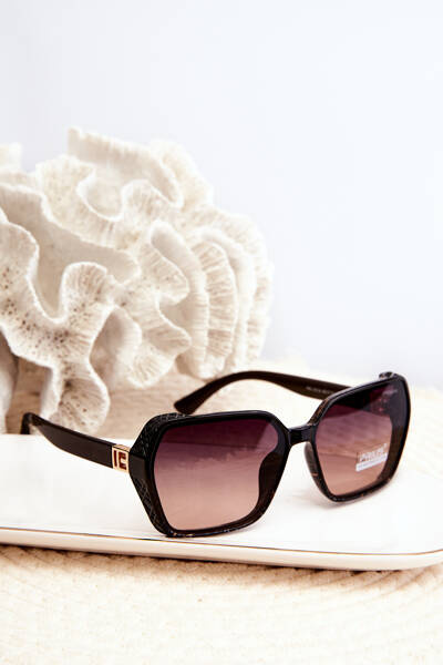 Жіночі класичні сонцезахисні окуляри з декоративними деталями UV400 чорно-коричневі