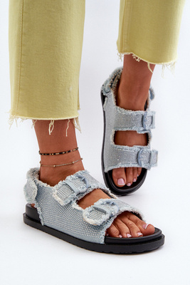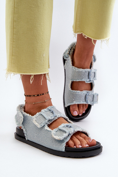 +1Сині жіночі джинсові босоніжки Irmale з прикрасами