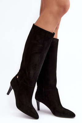 Жіночі замшеві чоботи вище коліна SBarski HY27098A Чорні