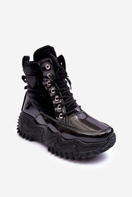 Лаковані чоботи на масивній платформі з блискавкою Чорний Рінго
