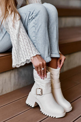 Шкіряні утеплені чоботи на пряжці, бежеві Osonia
