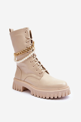 Шкіряні високі черевики з ланцюжком бежеві Nameer