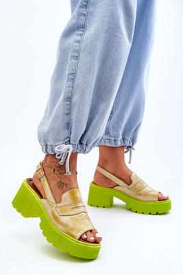 Шкіряні босоніжки на підборах і платформі Maciejka 06039-07 Жовті