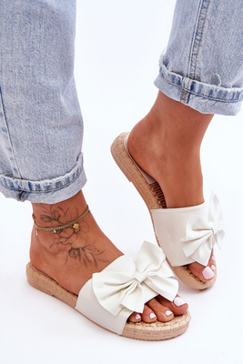 Модні жіночі тапочки з бантом білі Estera