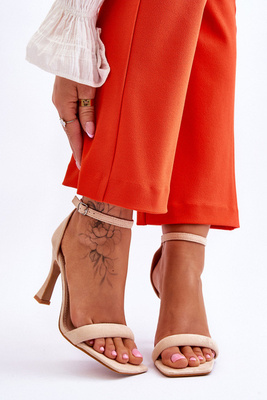 Жіночі шкіряні босоніжки на підборах бежеві Seyna