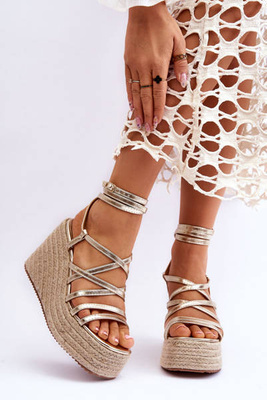 +3Жіночі босоніжки на танкетці золоті Kendall